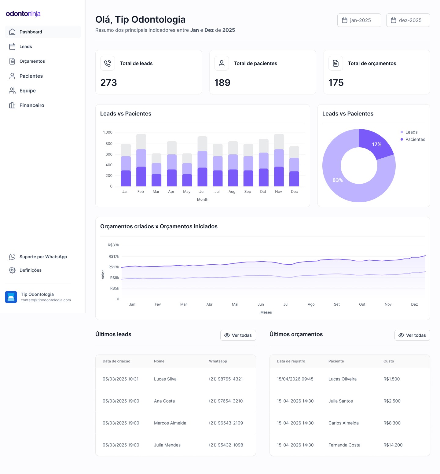 A plataforma que conecta cada lead ao tratamento iniciado. Organize leads, crie orçamentos profissionais e tenha visão real do seu negócio.